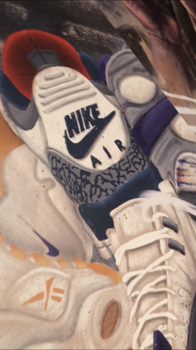 This poster is comprised of each element of the art installation experience. From the main mural sketch, to the sneaker maps, to Kobe “Bean” Bryant as a guiding light.
